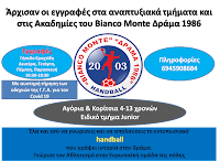 Μεγάλες διακρίσεις για τους αθλητές του BIANCO MONTE DRAMA 1986 Αδάμ Παπαδόπουλο, Αχιλλέα Τόσκα, Αθανάσιο Παπάζογλου, Ευγένιο Τουνγκελίδη, Ελευθέριο Παπάζογλου, Έκτωρα Πολύδωρος, Χρήστο Χαϊτίδη αλλά και για τον προπονητή της Ανδρικής ομάδας Σάκη Βαλαβάνη.....